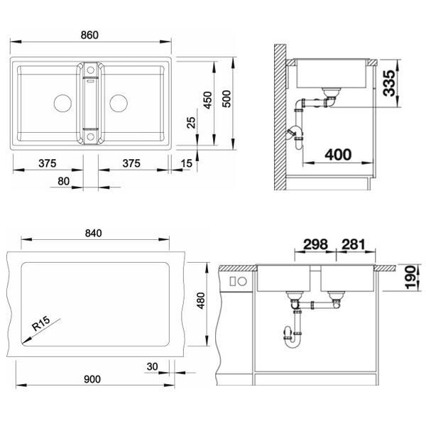860 x 500 mm Medencemélység: 190 / 190 mm Alaptartozék: