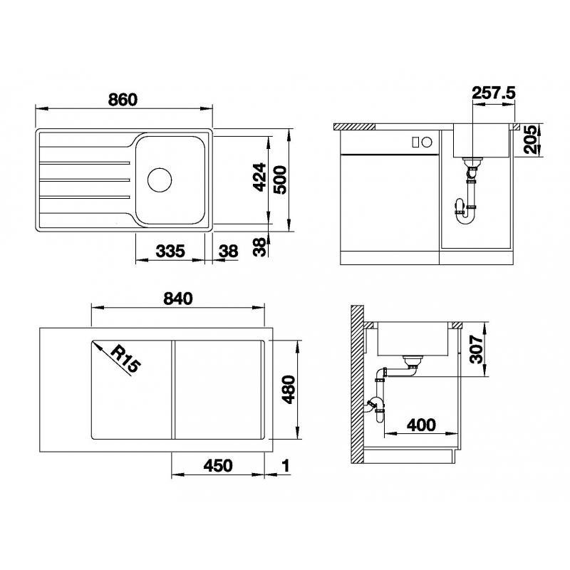 860 x 500 mm Medencemélység: 205 mm Alaptartozék: Lefolyógarnitúra helytakarékos csővel, |