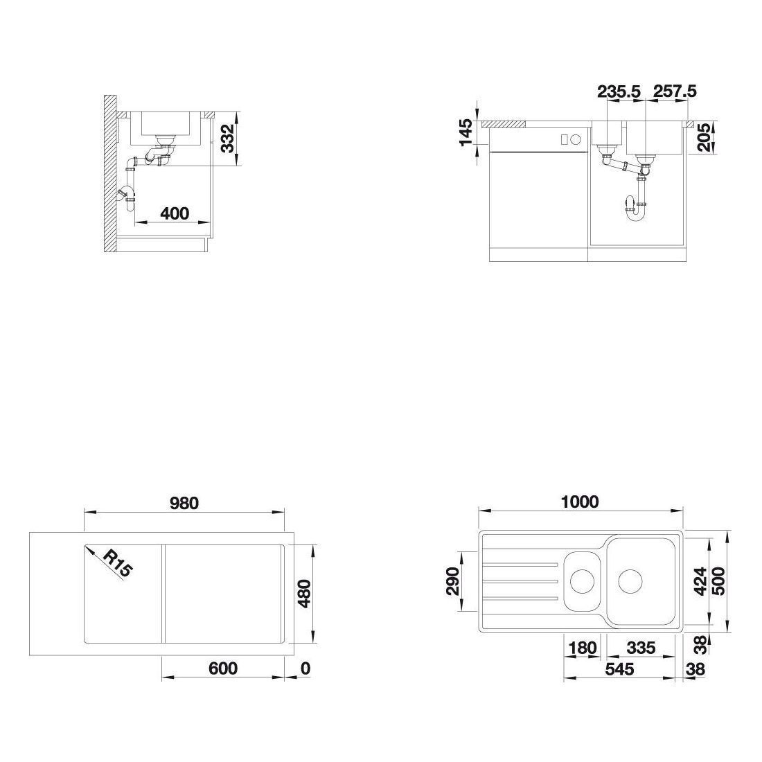 1000 x 500 mm Medencemélység: 205 / 145 mm Alaptartozék: Lefolyógarnitúra helytakarékos csővel, |